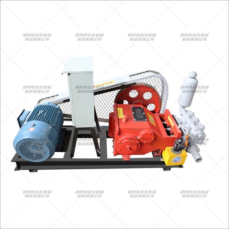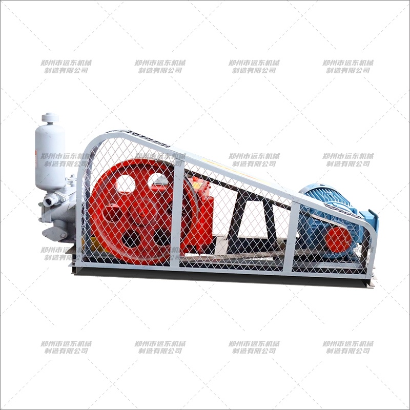 BW300注漿機主要作用于隧道開鑿與維護道路、橋梁、水壩、礦山建設和高層建筑的基礎設施處理工程及各類注漿施工工程,巖芯鉆機配套輸送泥漿,礦井排污及遠距離送水等其他用途。 該機為臥式三缸往復單作用活塞泵,該泵具有兩種缸徑和四擋變量,大缸套用于1000米大口徑鉆機配套,小缸套用于1500米小口徑鉆機配套。 1、具有可滿足大小口徑鉆機所需的各四擋流量,參數選合理,可與XY-4和XY-5型鉆機配套使用。可滿足不同口徑、不同孔深、不同地質巖心鉆探的需要。 2、活塞為碗形加尼龍靠背的自封式S型聚胺脂橡膠活塞,大大提高使用壽命。3、拉桿上設有五道防塵密封圈,以防止液力端的泥漿帶入動力端和動力端潤滑濾。密封可靠,使齒輪延長使用壽命。 4、進排水閥采用鋼球。并在閥蓋上設有減聲橡膠墊,以減少沖擊噪聲。5、壓力表采用BY-1型抗震壓力表,壽命長。 6、可拆性好,便于維修和搬遷。